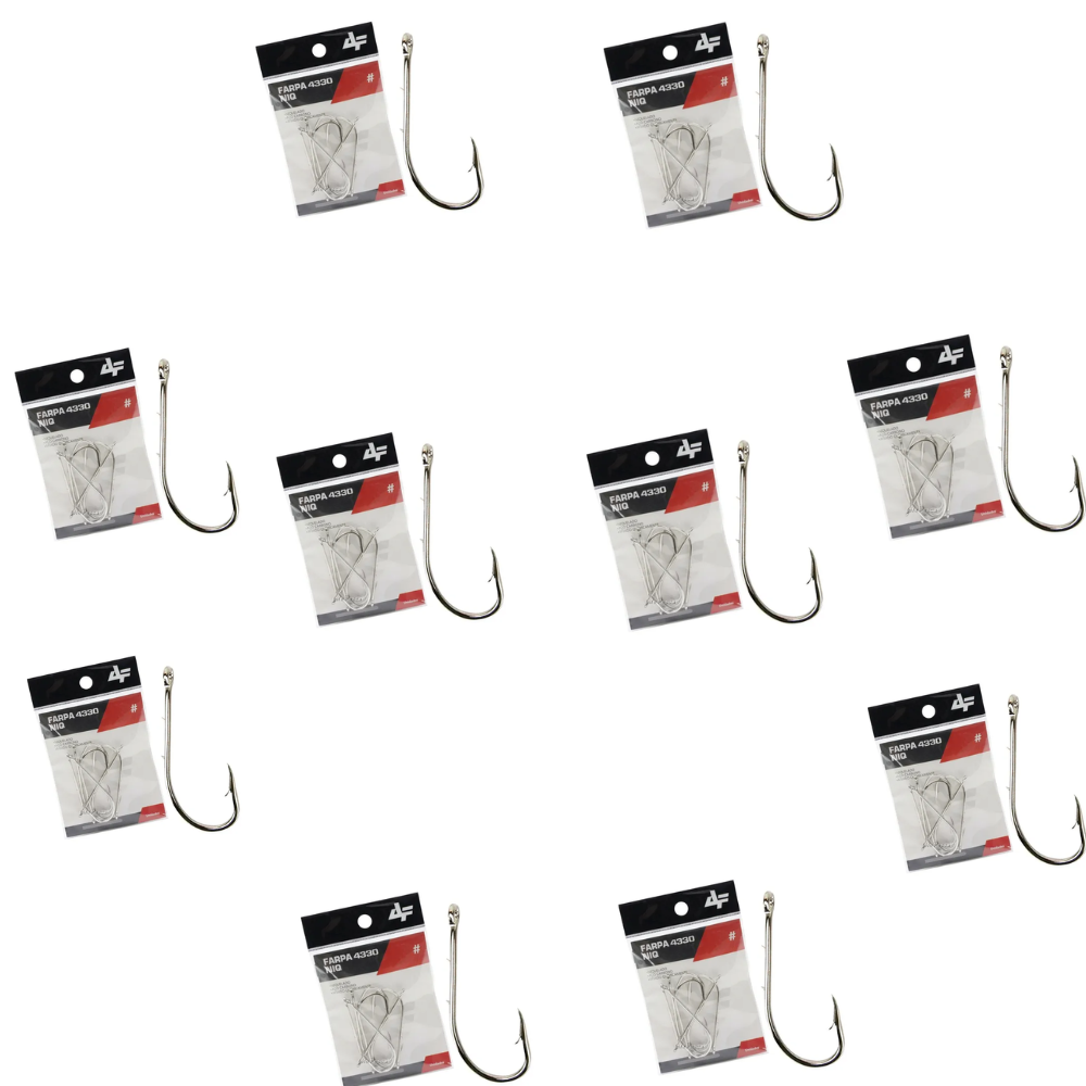 Anzol Farpa 4330, fabricado emAço carbono de alta resistência Anzol com argola e haste longa com farpas o que facilita a fixação da isca. Indicado para pesca de Dourado, Pintado, Jaú, Pirara, Piraíba, etc