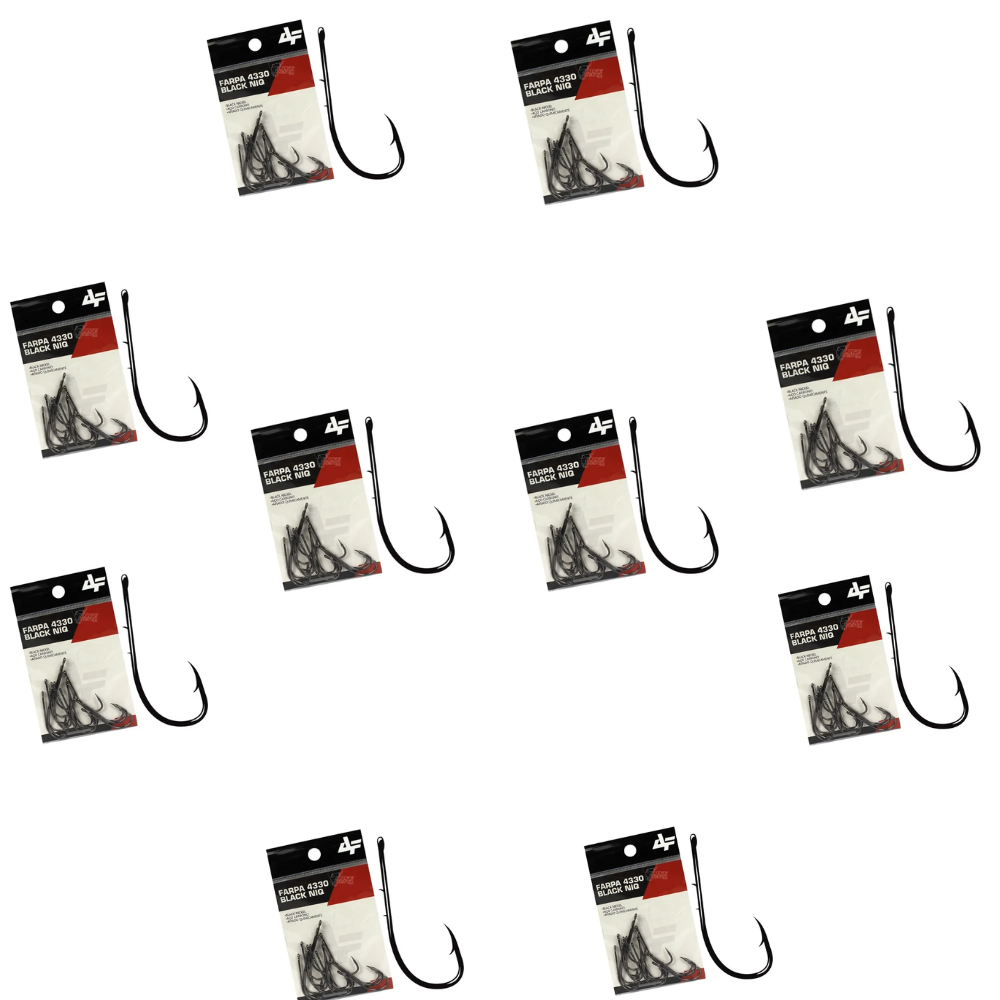 Anzol Farpa 4330, fabricado emAço carbono de alta resistência Anzol com argola e haste longa com farpas o que facilita a fixação da isca. Indicado para pesca de Dourado, Pintado, Jaú, Pirara, Piraíba, etc