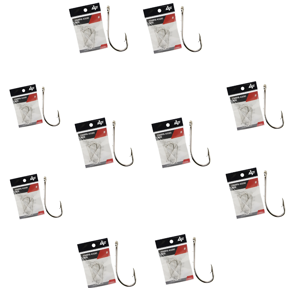 Anzol Farpa 4330, fabricado emAço carbono de alta resistência Anzol com argola e haste longa com farpas o que facilita a fixação da isca. Indicado para pesca de Dourado, Pintado, Jaú, Pirara, Piraíba, etc