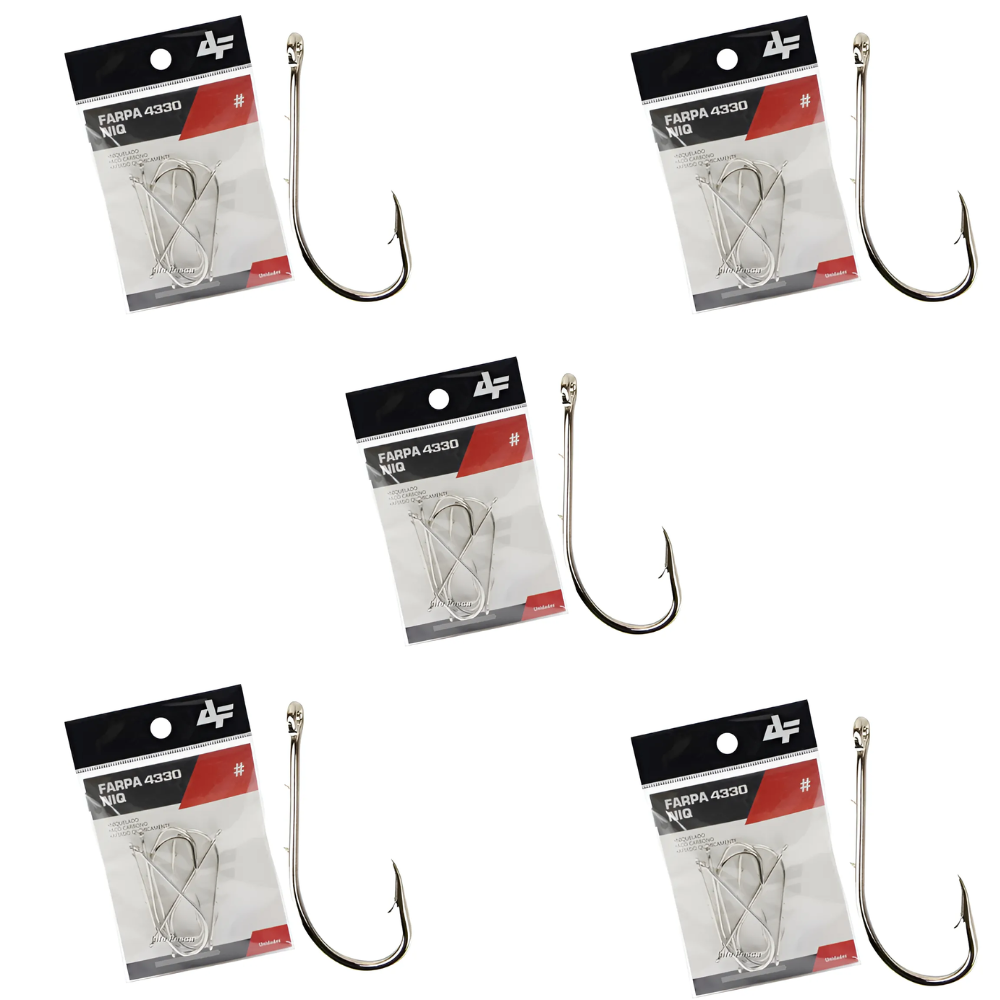 Anzol Farpa 4330, fabricado emAço carbono de alta resistência Anzol com argola e haste longa com farpas o que facilita a fixação da isca. Indicado para pesca de Dourado, Pintado, Jaú, Pirara, Piraíba, etc
