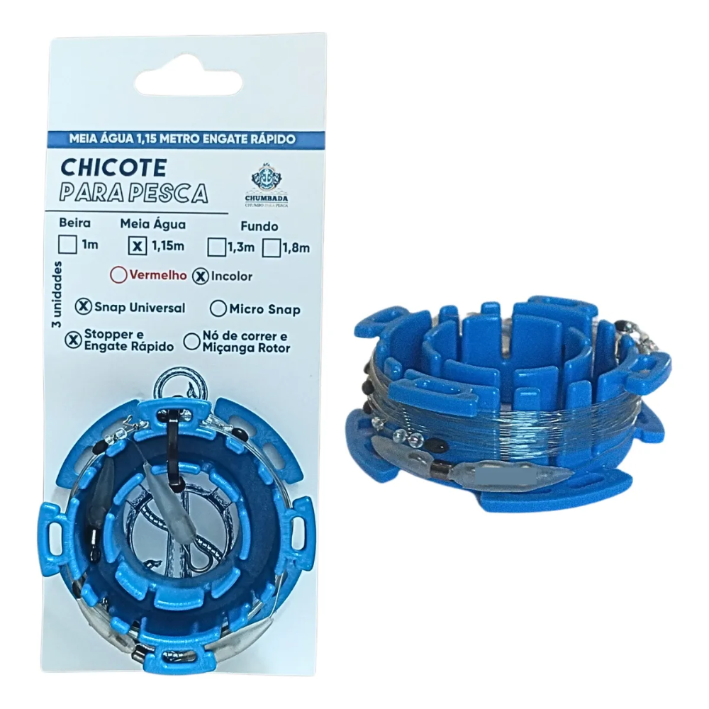 1 carretel azul com 3 chicotes meia água 0,42mm incolor