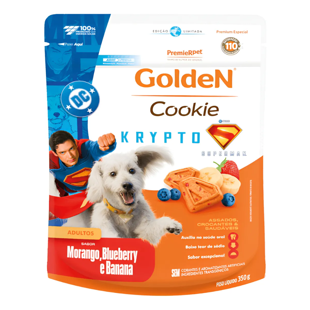 O Golden Cookie Krypto da Premier Pet é um biscoito super premium, assado e desenvolvido especialmente para cães adultos de porte pequeno. Inspirado no personagem Krypto, o Supercão da DC Comics, este petisco combina sabor irresistível com ingredientes de alta qualidade. Além de agradar ao paladar dos cães, contribui para a saúde bucal e o bem-estar geral, sendo uma ótima forma de demonstrar carinho no dia a dia.
