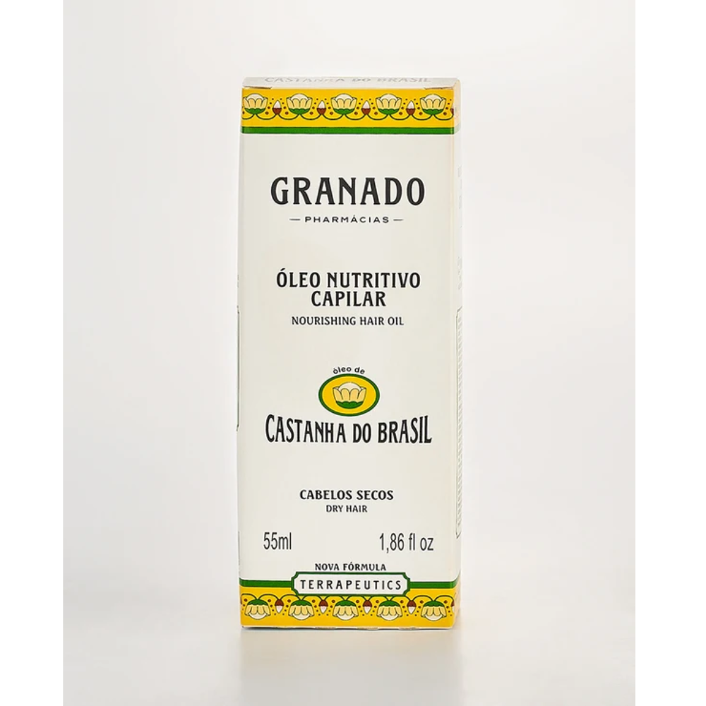 Óleo Capilar Terrapeutics Castanha Do Brasil 55ml Granado NUTRIÇÃO E HIDRATAÇÃO INTENSA QUE O SEU CABELO PRECISA! Óleo nutritivo para cabelos secos. Ideal para nutrição e hidratação dos fios. Enriquecido com óleos naturais de castanha e de argan, hidrata profundamente os fios e repara as pontas duplas. Sua fórmula leve e livre de corantes ou parabenos proporciona brilho intenso e maciez enquanto disciplina os fios sem deixá-los pesados. ESPECIFICAÇÕES: Marca: Granado Linha: Terrapeutics Modelo: Óleo Volume: 55ml BENEFÍCIOS: Para a nutrição e reparação dos fios secos e ressecados Hidrata intensamente os fios e repara as pontas duplas Proporciona brilho, maciez e disciplina aos fios sem deixá-los pesados Não contém ingredientes de origem animal MODO USAR: Aplique uma pequena quantidade na palma das mãos e espalhe ao longo dos fios, evitando a raiz. Pode ser usado como finalizador nos cabelos secos ou úmidos e antes da secagem, para protegê-los. Para um tratamento mais potente, adicione algumas gotas do óleo na Máscara Reparadora Capilar Castanha do Brasil.
