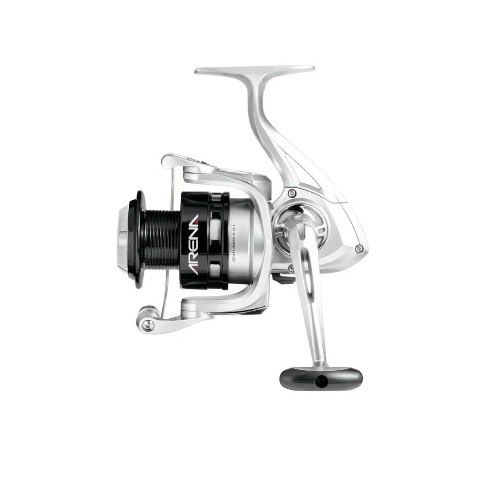 O molinete Marine Sports Arena 5000 tem seu corpo confeccionado em grafite resistente, fricção traseira possibilitando ajuste rápido, carretel de arremesso longo, relação de recolhimento: 5.0:1 e sistema balanceado para um trabalho mais suave. Especificações Técnicas: Modelo: Molinete Arena 5000 RD Relação de recolhimento: 5.0:1 Fricção Traseira Nº de rolamentos: 1 em aço Inox Alavanca de anti-reverso Manivela bilateral ajustável Capacidade de linha: 0,45mm-150m 0,50mm-120m Peso Aprox: 400g Material do Corpo: Grafite