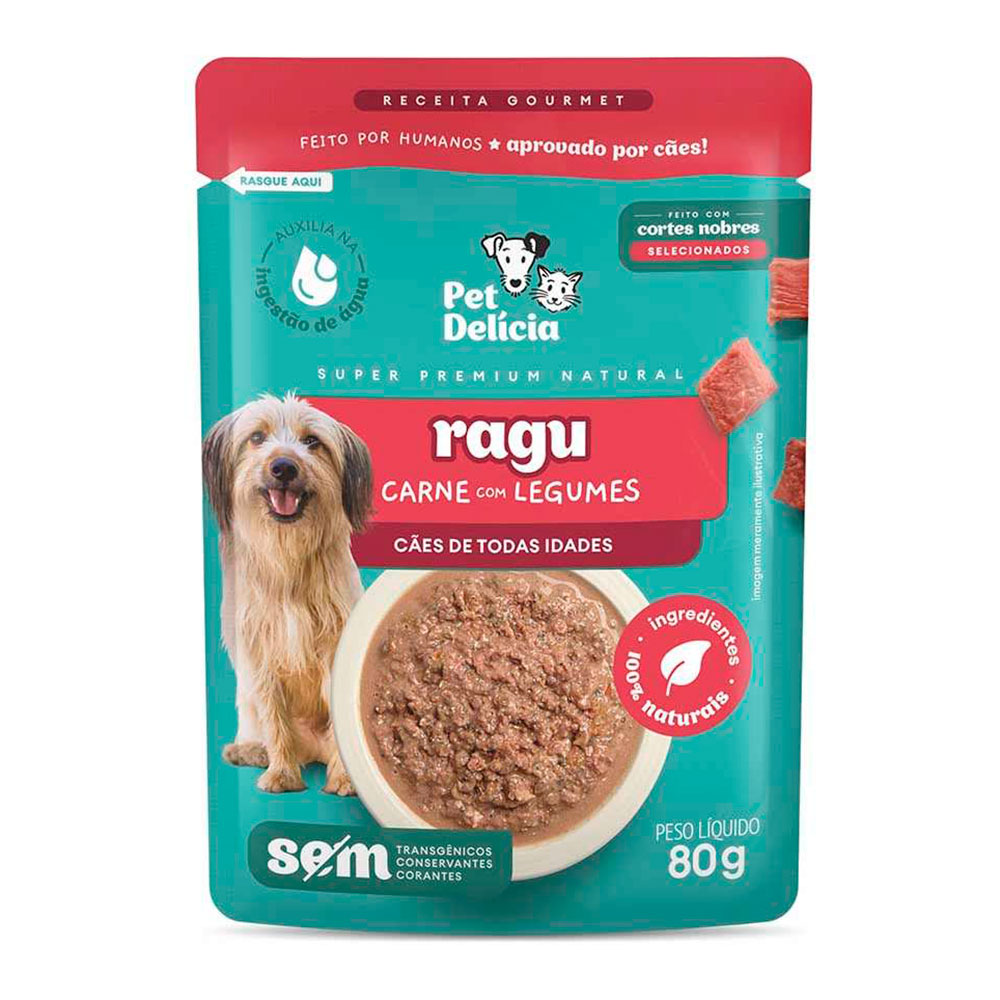 Ragu de carne com legumes é um alimento úmido e natural que deixa o dia do seu cão deliciosamente saboroso, auxilia na ingestão de água e enriquece as refeições com sabor e nutrientes. Feito com cortes nobres de carne e sem adição de Sal.