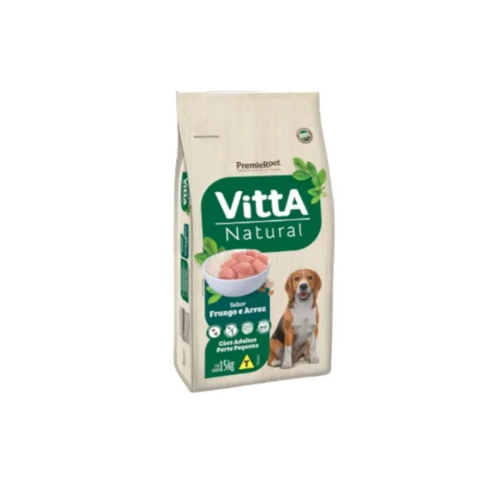 A linha Vitta® Natural é formulada com proteínas de alta qualidade e é enriquecida com todas as vitaminas e minerais necessários para que os cães vivam saudáveis e felizes. Elaborado com ingredientes naturais e cuidadosamente selecionados, o produto Vitta® Natural Adultos Raças Pequenas Frango e Cereais Integrais, além de muito saboroso, não possui corantes e aromatizantes artificiais. Promove também a saúde intestinal, através da associação de fibras naturais com prebiótico, e auxilia para uma pelagem bonita, pela presença do ômega 6. COMPOSIÇÃO Farinha de vísceras de frango, farelo de glúten de milho 21*, grão de milho*, quirera de arroz, grão de trigo, aveia, gordura de frango, cloreto de potássio, cloreto de sódio, ácido propiônico, bentonita, BHA (Butilhidroxianisol), BHT (Butilhidroxitolueno), hidrolisado de fígado de aves e suíno, vitamina A, vitamina B1, vitamina B2, vitamina B3, vitamina B5, vitamina B6, vitamina B7, vitamina B9, vitamina B12, vitamina C, cloreto de colina, vitamina D3, vitamina E, vitamina K3, iodeto de cálcio, selenometionina hidroxi análoga, sulfato de cobre pentahidratado, sulfato de ferro, sulfato de manganês, sulfato de zinco monohidratado. *Contém milho e farelo de glúten de milho 21 transgênicos (espécies doadoras de gene: Bacillus thuringiensis e/ou Agrobacterium tumefaciens e/ou Streptomyces viridochromogenes e/ou Zea mays).