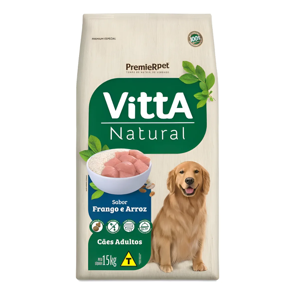 Vitta® Natural Frango & Cereais Integrais é elaborada com uma fonte nobre de proteína de alta palatabilidade. Combinado com ingredientes saudáveis e nutritivos como arroz, trigo, aveia e levedura de cerveja conferem força e energia ao seus cão, além de um sabor insuperável. COMPOSIÇÃO Farinha de vísceras de frango, farelo de glúten de milho 21*, grão de milho*, quirera de arroz, trigo grão, aveia, gordura de frango, cloreto de potássio, cloreto de sódio, ácido propiônico, bentonita, BHA (Butilhidroxianisol), BHT (Butilhidroxitolueno), hidrolisado de fígado de aves e suíno, vitamina A, vitamina B1, vitamina B2, vitamina B3, vitamina B5, vitamina B6, vitamina B7, vitamina B9, vitamina B12, vitamina C, cloreto de colina, vitamina D3, vitamina E, vitamina K3, iodeto de cálcio, selenometionina hidroxi análoga, sulfato de cobre pentahidratado, sulfato de ferro, sulfato de manganês, sulfato de zinco monohidratado. *Contém milho e farelo de glúten de milho 21 transgênicos (espécies doadoras de gene: Bacillus thuringiensis e/ou Agrobacterium tumefaciens e/ou Streptomyces viridochromogenes e/ou Zea mays)