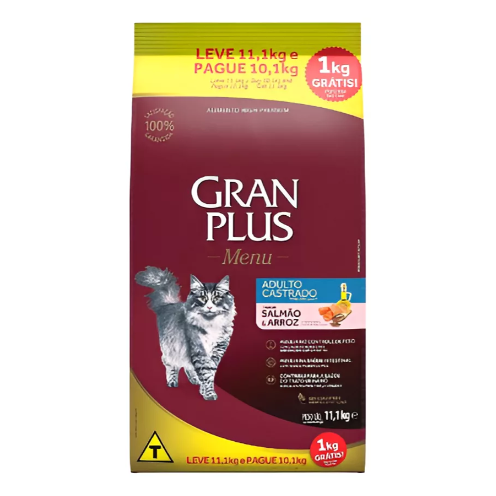 Ração GranPlus Menu Gato Castrado Salmão e Arroz é a escolha perfeita para quem deseja proporcionar uma alimentação equilibrada e saborosa ao seu gato castrado.